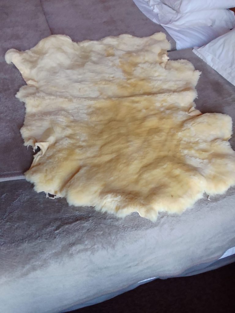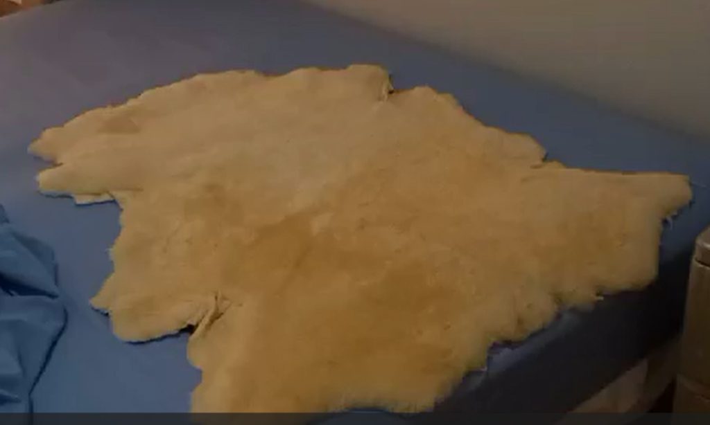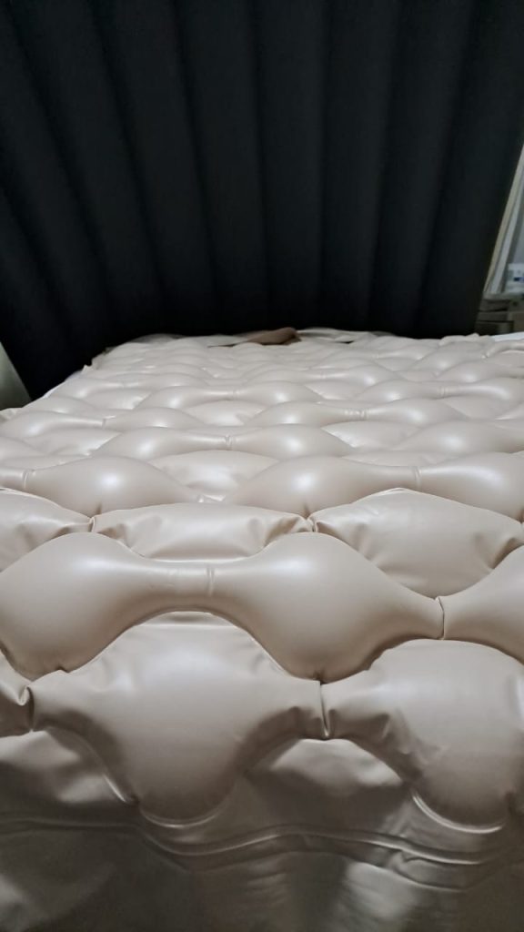 Ian’s muscles in his shoulders are not what they used to be and this means sleeping is rather uncomfortable as it feels like his bones are digging into the bed base, rather than the mattress. In recent weeks, Ian has been sleeping on a sheep’s skin which did bring relief but now his hips are sore. His Occupational therapist suggested a pressure mattress. Below are images of the medical aids Ian has received.