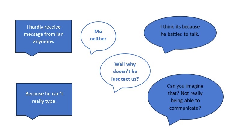 Some of you may have noticed that Ian does not communicate as much as he used to. Using his fingers is a struggle, his left thumb is more nimble than any other finger and even that, is difficult. Sending WhatsApp messages take much effort so if you get something from Ian, know he’s made the effort, or he has asked Fiona to type a reply on his behalf. Ian’s speech is also not what it used to be and he is very aware that he no longer speaks clearly.