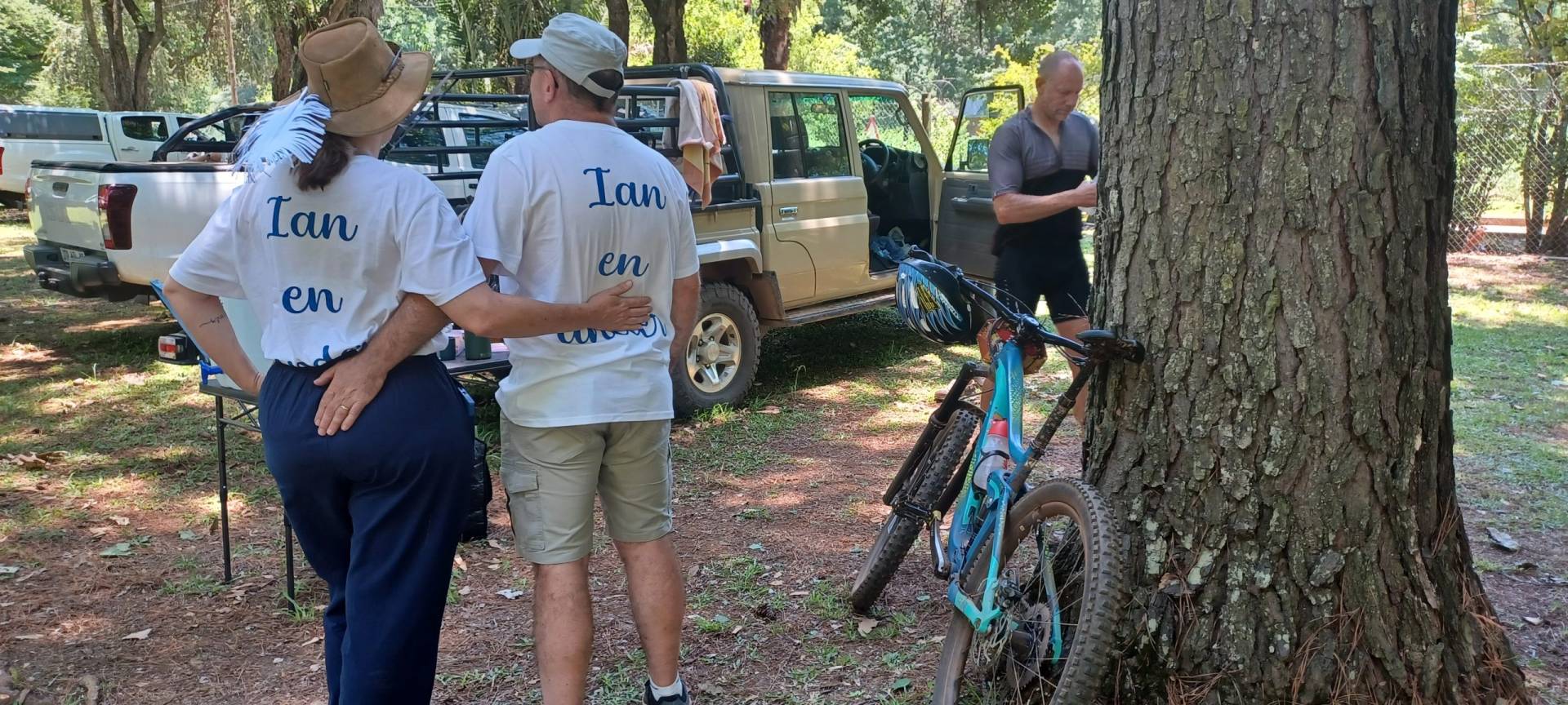Joshua, Ian’s grandson joined Laura (previous Ian en ander champion) and Pieter, Ian’s son-in-law at a relay mountain bike event in Sabie. They rode 7km in relay to raise funds for Ian. A sponsor came forward for their team. Team Brakanjan rode for 2hrs20 and did very well! They had completed 7 laps by then. If time had been on their side, they would have contested for a better position. None-the-less, support from Jennie, Martie and Norman most definitely added to the atmosphere and MND/ALS awareness campaign.